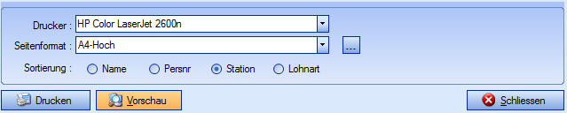 Unter dem Feld „Drucken" können Sie die Druckeinstellungen vornehmen. Zudem haben Sie hier die Möglichkeit die Liste nach verschiedenen Kriterien zu sortieren.