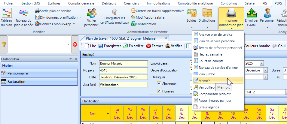 Les mémos peuvent être imprimés sous PEPS / Évaluation / Imprimer la planification / Mémo.