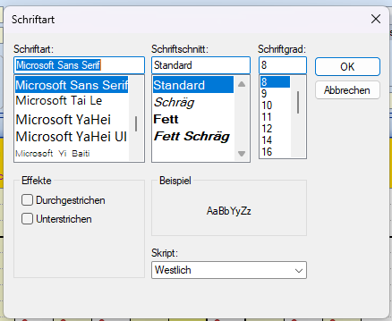 Cliquez sur l'affichage à modifier et sélectionnez la police et la taille de police appropriées dans la fenêtre de configuration. Confirmez votre sélection en cliquant sur OK.
