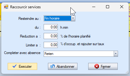 À partir de la version 3.5.3.11, il est possible de raccourcir les services. Vous pouvez raccourcir des services individuels ou une plage librement définie en une seule fois.