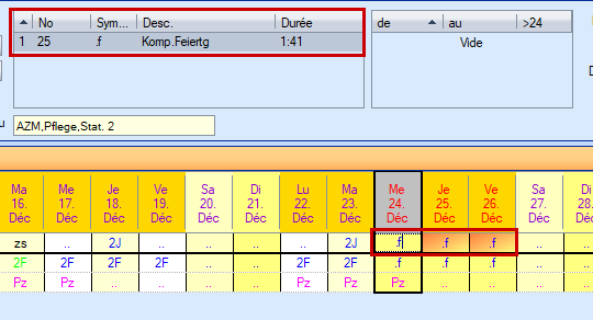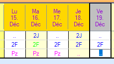 Seuls les services et les absences se complètent lorsqu'ils sont planifiés dans plusieurs colonnes. Les absences s'accumulent.