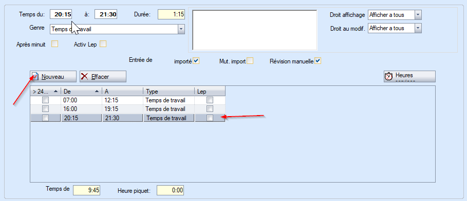 Il est possible de saisir autant de temps supplémentaires (de - à) que souhaité.