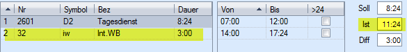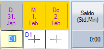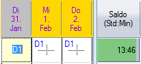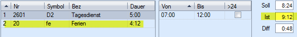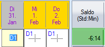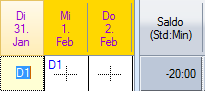 Les 20 heures supplémentaires ont été créditées sur le compte des heures supplémentaires. Les heures supplémentaires sont déduites à l'aide du symbole d'absence « heures supplémentaires compensées (.u) ».