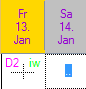 Cet exemple est une planification illogique, car avec un temps de travail théorique de 8 h 24, il n'est pas possible de travailler 5 heures et de prendre 4 h 12 de congés ! Cela entraîne des différences entre le solde du compte et le solde prévisionnel !