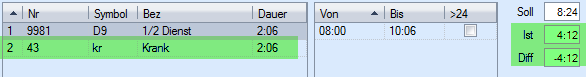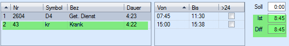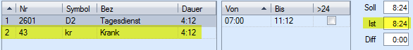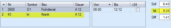 Contrairement aux services, les absences n'ont pas d'heures de début et de fin, mais seulement une durée.