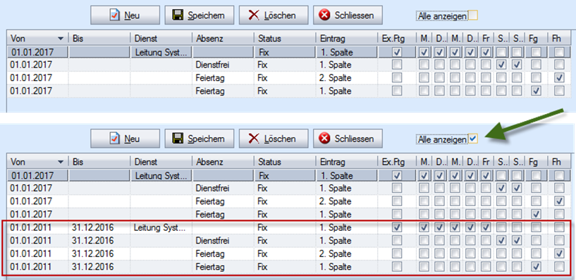 Das Verändern der Planung in einem abgeschlossenen Jahr ist ebenfalls nicht mehr möglich.