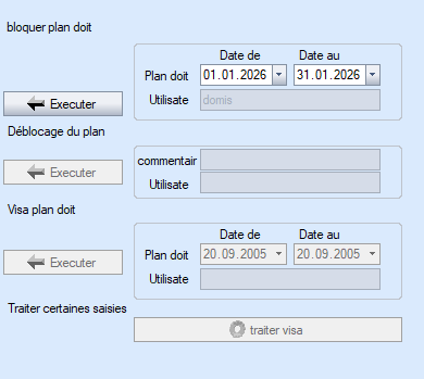 Le traitement du gel des données prévisionnelles (état de gel) s'effectue pour les deux options dans le masque « Verrouiller les données prévisionnelles » :