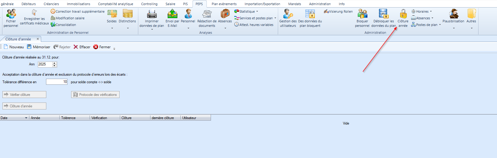 4) La clôture ouverte s'affiche dans la grille et <Vérifier la clôture> devient actif