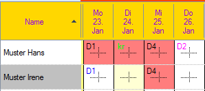 Auf dem Dienstplan werden Ihnen nun alle Dienste die seit dem Fixieren geändert haben markiert. Wenn Sie den Mauszeiger auf einen markierten Dienst stellen, zeigt es Ihnen den Originaldienst an.