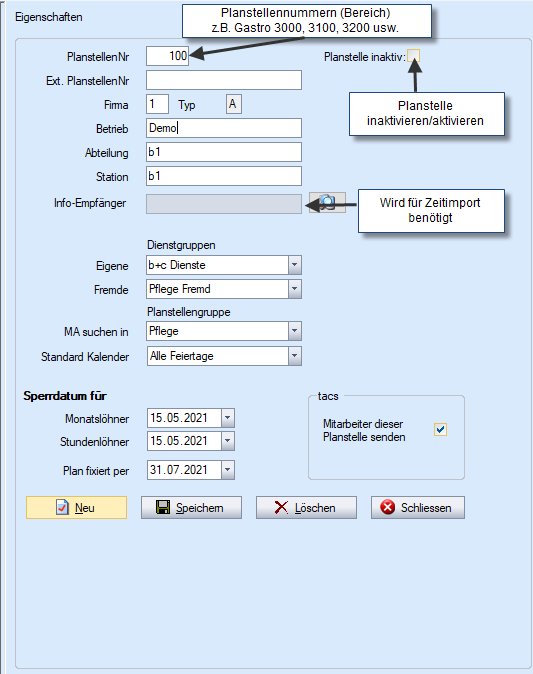 Diese Planstellen sind danach nicht mehr auswählbar oder Mitarbeiter können nicht an inaktiven Planstellen zugeordnet werden.