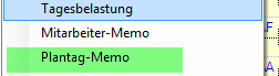 Klicken Sie mit der rechten Maustaste in der Plantafel auf den Tag für den Sie ein Memo erstellen möchten und klicken Sie in der Dialogbox auf Plantag-Memo.