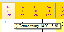 Fahren Sie nun mit der Maus auf den Tag wird der Memo-Eintrag angezeigt. In unserem Beispiel also die Teamsitzung.