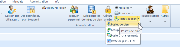Dans la barre de menus, sous PEPS / Administration / Postes de plan, vous accédez à la gestion des postes.