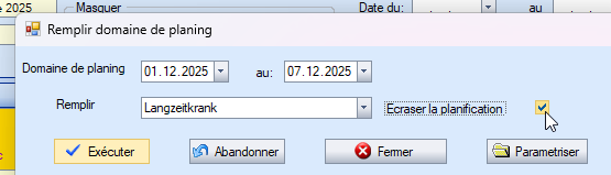 Avec « Remplir la zone sélectionnée », vous pouvez également écraser une planification existante.
