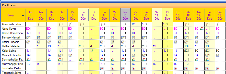 Dans la ligne « Jours ouvrables (Lu-Ve) », cliquez sur la petite flèche et recherchez le symbole d'absence pour maternité.