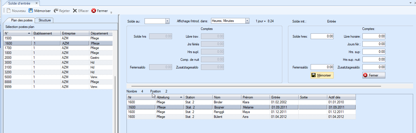 Sur le côté gauche, vous pouvez sélectionner le poste auquel l'employé est affecté.