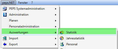 Unter „PEPS / Auswertungen / Statistik" können Sie verschiedene Statistiken erstellen und ausdrucken, je nachdem welche Listen von Ihrem Administrator erstellt wurden.