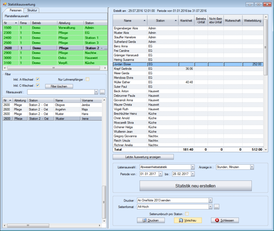 Filter nach Berufsgruppen: Wenn Sie über alle Pflegestationen nur die Diplomierten Fachkräfte in einer Statistik auswerten wollen usw.