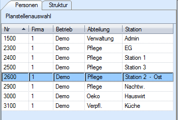Unter Planstellenauswahl können Sie die gewünschte Planstelle auswählen.