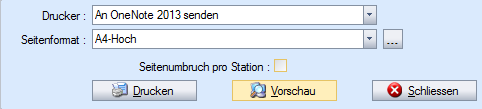 Selektieren Sie den Drucker, die Seiteneinrichtung und bestimmen Sie ob Sie einen Seitenumbruch nach Station wünschen