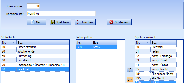 Mit „Neu" fügen Sie die Liste zu den „Statistiklisten" hinzu.