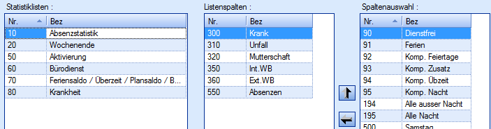 Mit dem Pfeil nach links übernehmen Sie die Spalte in die „Listenspalten".