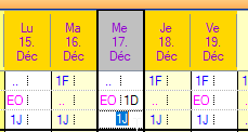 Un seul service (D1) ou une seule absence (.f) est planifié dans la colonne 1. Les 3 autres colonnes sont vides.