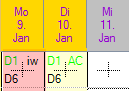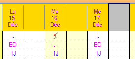 Si nécessaire et selon les paramètres, vous pouvez afficher les autres colonnes. Les applications possibles sont le service de jour suivi du service de garde, ou une demi-journée dans le service 1 et une demi-journée dans le service 2, ainsi que le service de jour, la réunion et le service de garde (3 colonnes), et en cas de mutations pour lesquelles les services et les absences sont planifiés le même jour.