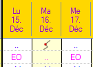 Seule la première colonne journalière (colonne 1) est affichée et les symboles sont placés dans cette colonne.