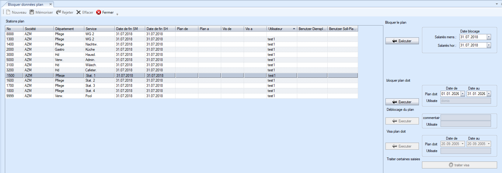 - Tant que le blocage existe, aucune autre planification ou modification horaire ne peut être effectuée dans les tableaux de planification pendant ces périodes.