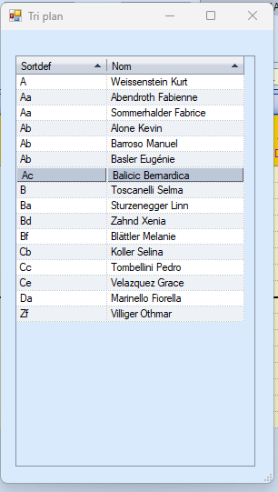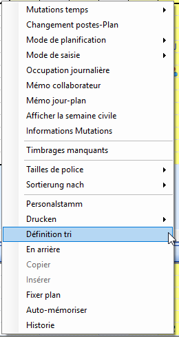 Cliquez avec le bouton droit de la souris dans la colonne des noms pour ouvrir la boîte de dialogue permettant de trier le tableau de planification.