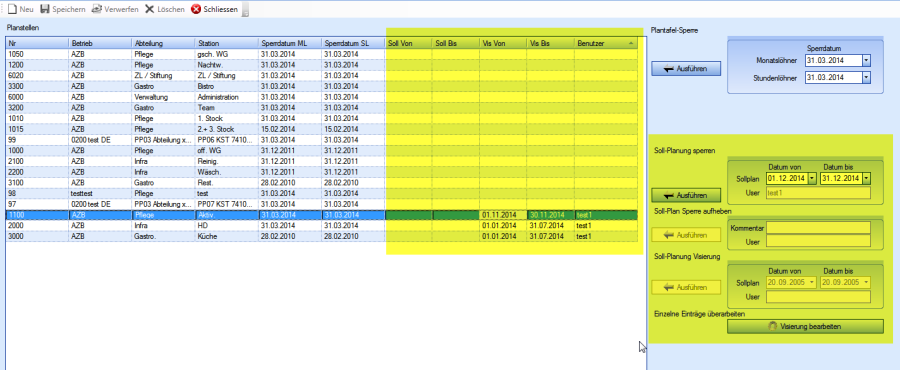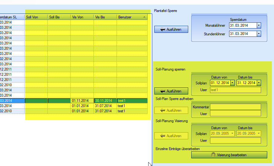 - Solange die Sperre existiert, kann in diesen Perioden keine weitere Planung oder Zeitmutation in den Plantafeln gemacht werden.