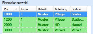 Im linken Teil des Fensters oben, finden Sie die Planstellenauswahl. Wählen Sie hier die auszuwertende Planstelle aus.
