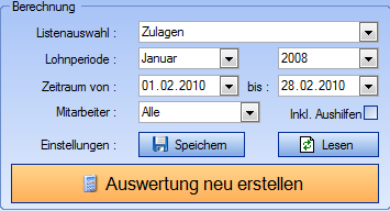 Lohnperiode: Geben Sie die Lohnperiode für die Auswertung ein.