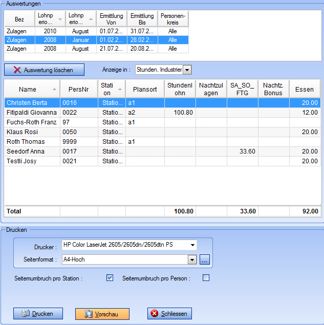 Unter PEPS_Auswertungen_Zulagen können Sie die Zulagenliste ausdrucken.