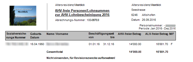 Interne Abrechnung der AHV/ALV-freien Beiträge (nur zu Revisionszwecken)