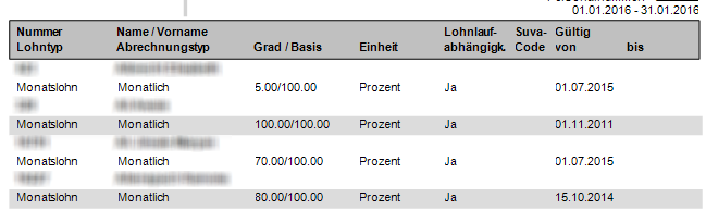 Personeninformationen werden mit lohnrelevanten Daten dargestellt. Die gewünschten darzustellenden Lohnarten können frei gewählt und via Konstanten eingerichtet werden.