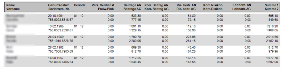 Das ist ein Beispiel einer Standard-Pensionskassen-abrechnung. Was auf dieser Liste zu sehen ist, wird durch Konstanten gesteuert.