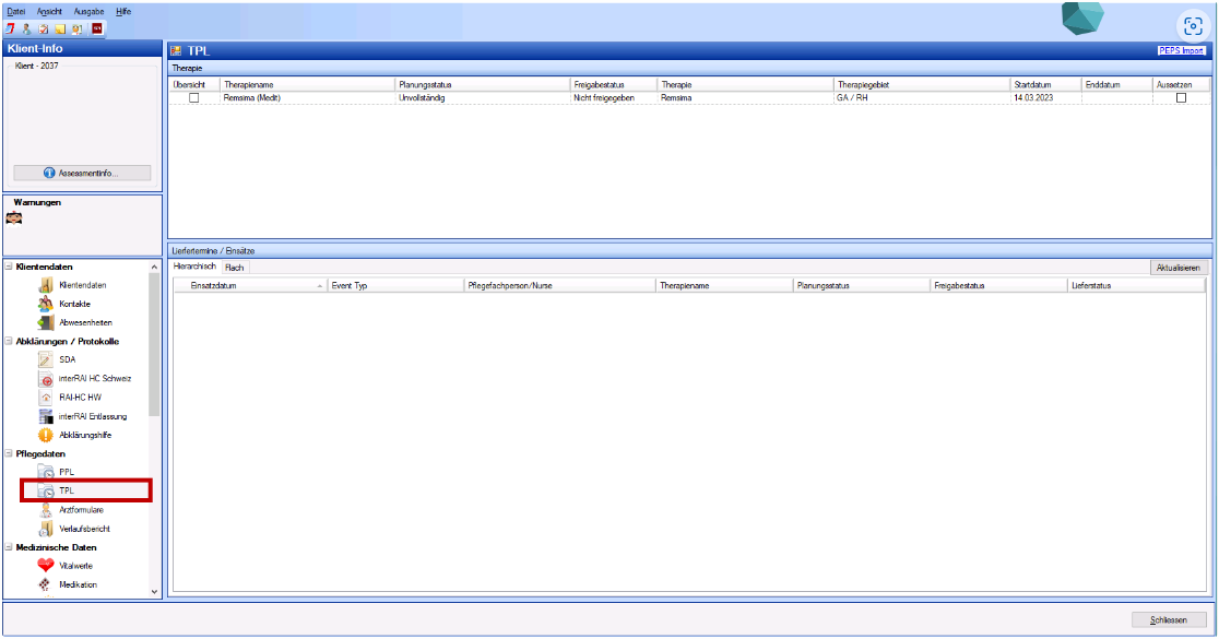 Die klientenspezifische Planung einer Therapie erfolgt im Klientendossier im Modul "TPL".
