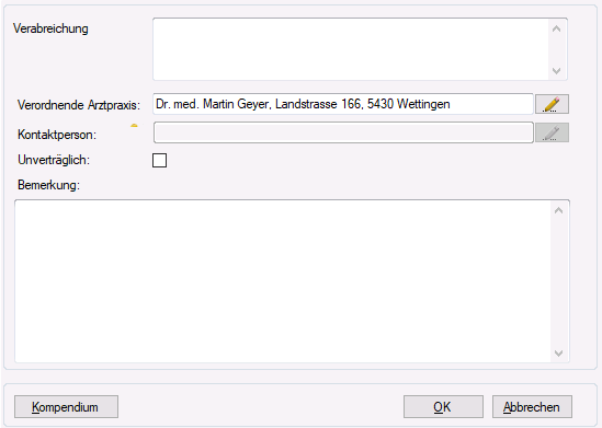 • Medikament: Dies kann aus dem Katalog "Medisliste" entnommen werden.