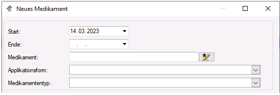 Im neuen Medikationseintrag sind die folgenden Felder zu befüllen: