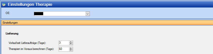 Die hier angegeben Anzahl Tage ist relevant für die Anzeige in der TPL. Generierte Therapien werden im Fenster "Liefertermine/Einsätze" nur für die Dauer der angegebenen Anzahl Tage im Voraus angezeigt.