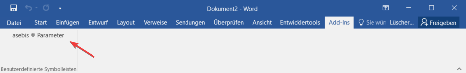 Navigieren Sie zum Speicherort der Datei asebis_ParameterD_Vx.x.dot, markieren Sie die Datei und wählen Sie Ok. Die Datei wird nun als verknüpftes Add-In angezeigt.