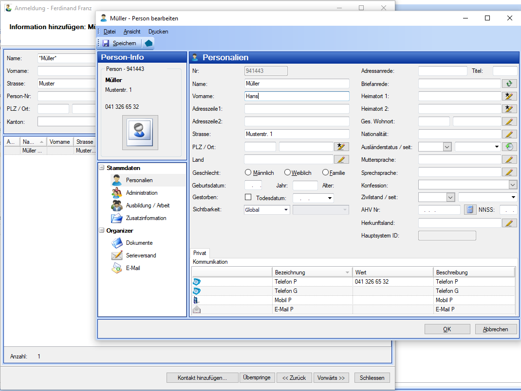 In der ersten Maske werden die Personalien des Klienten angelegt. Fehlt die NNSS-Nr. so erscheint eine Abfrage, ob eine Pseudo-Nummer angelegt werden soll.