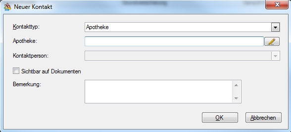 Wählen Sie den Kontakttyp aus dem Dropdown-Menü und erfassen Sie die notwendigen Felder im sich öffnenden Dialog.