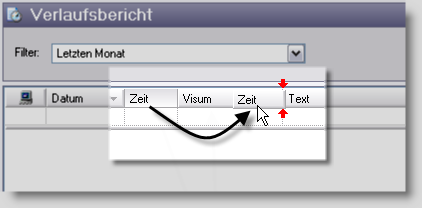 Cliquez avec la souris sur la colonne que vous souhaitez déplacer. Déplacer la tête de la colonne avec la souris à l'endroit désiré. Tout en se déplaçant la position est affiché avec deux flèches rouges. Relâchez le bouton de la souris lorsque la colonne est à l'endroit souhaitée.