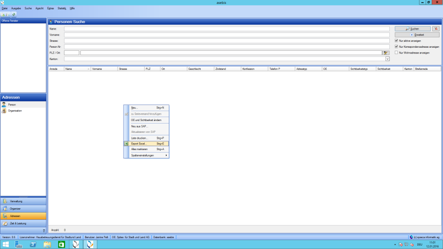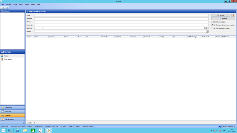 En outre, il existe d'autres dialogues de fenêtre qui ne sont pas directement utilisés dans cette présentation de fenêtre. Dès lors que l'application principale de asebis® est ouverte, vous avez l'avantage avec cette fenêtre modale de pouvoir travailler avec plusieurs fenêtres ouvertes. Vous avez la possibilité de travailler simultanément avec plusieurs fenêtres ouvertes, sans avoir besoin d'en fermer.