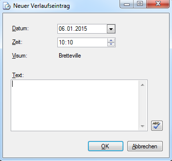 Über das Kontextmenü Neu… geben Sie einen neuen Verlaufseintrag ein.