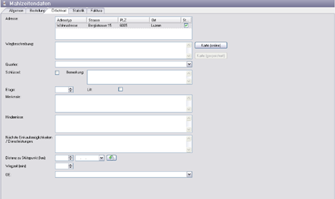 In den Mahlzeitendaten werden alle Stammdaten erfasst, die im Zusammenhang mit dem Kunden und den Mahlzeiten relevant sind. Dabei wird zwischen den klassischen Kundendaten und den Daten, welche in der Personenverwaltung erfasst sind unterschieden.