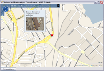 Über die Schaltfläche Karte (online) haben Sie die Möglichkeit, eine Strassenkarte mit der Wohnadresse des Kunden aufzurufen. (Voraussetzung dafür ist eine Verbindung mit dem Internet).